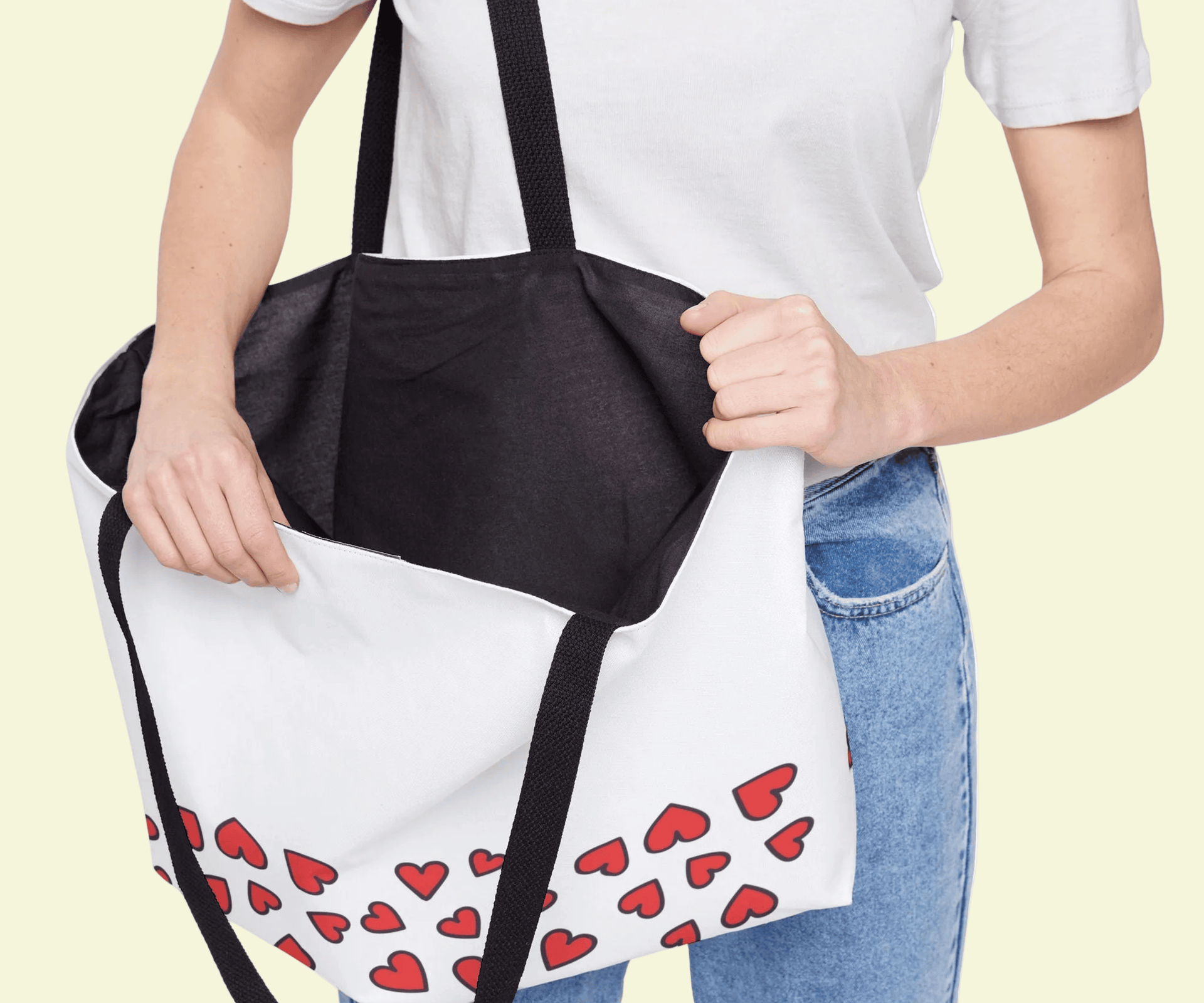 Shop Scattered Hearts Bags designed for Valentine’s Day, self-love, and self-worth. “Love Me or Leave Me” heart bags make the perfect gift. Order early—holiday print delays apply.