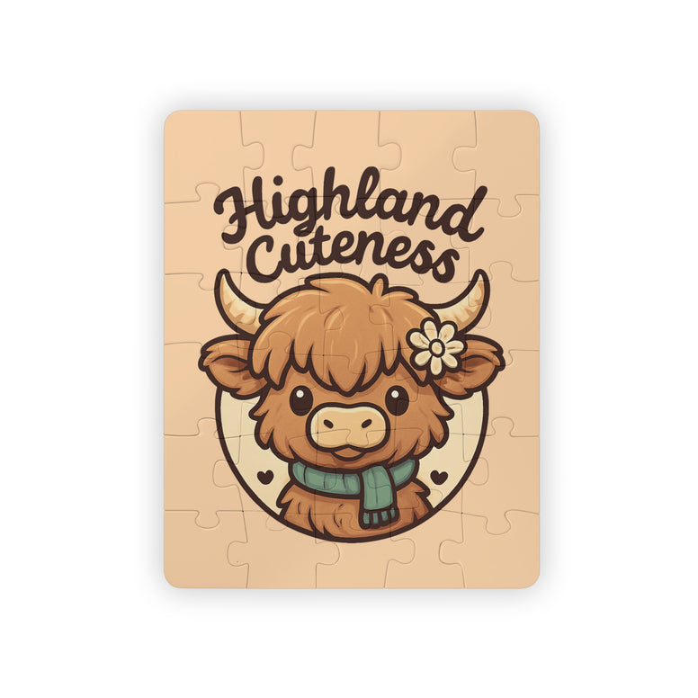 Soft, playful, and built for little hands — this 30-piece kids' puzzle brings a sweet Highland calf to life with warm tones and big, friendly shapes. Each sturdy chipboard piece has rounded corners and a laminated finish so it survives handfuls of curious explorers and repeat assemblies. The full-color box features the finished artwork as a reference, helping young solvers build confidence as they match the bright, crisp pieces into the 14" x 11" scene. This puzzle turns quiet moments into proud “I did it!” celebrations and makes storytime, rainy afternoons, or calm-down corners more cozy and calm.