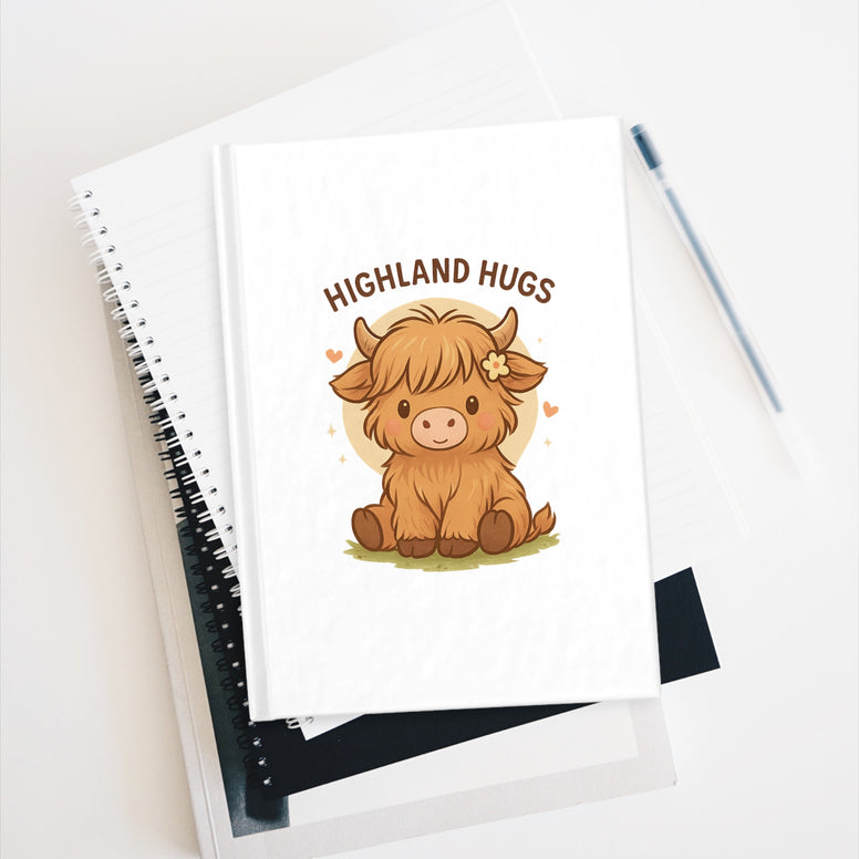- Matte laminated full-wrap hardcover with highland cow artwork