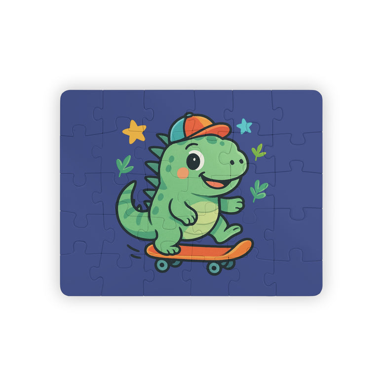 Bright, playful, and built for little hands — this 30-piece kids' puzzle brings a skateboarding dino to life with bold colors and chunky, easy-to-handle pieces. Each piece is made from laminated chipboard with rounded corners to keep assembling safe and simple. The completed puzzle measures 14" x 11" and arrives in a box printed with the full design so young builders can reference the picture as they work. It’s the kind of screen-free activity that sparks concentration, fine-motor practice, and a proud ‘I did it!’ moment. Pop it out on the floor during quiet play, slip it into a rainy-day activity stack, or pass it around at little playdates — kids will enjoy matching the bright shapes and celebrating when the cute dino lands on the skateboard.