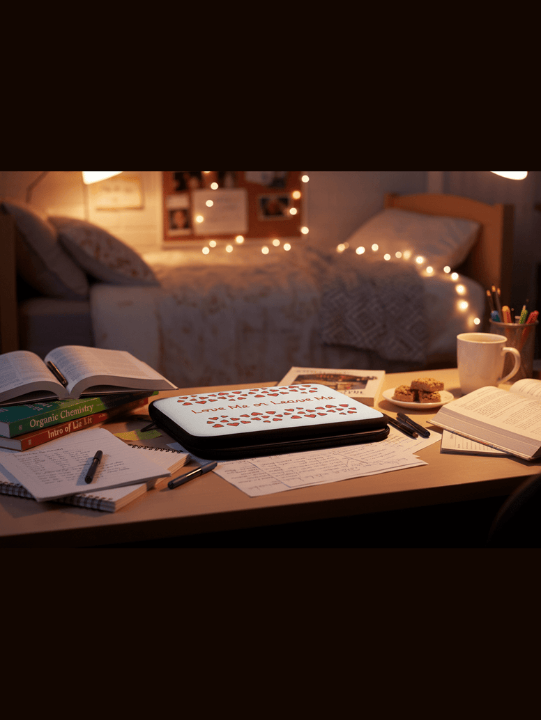 A soft neoprene laptop sleeve that carries a bold, playful message — “Love Me or Leave Me” framed by scattered red hearts. Lightweight and water-resistant, the sleeve cushions your device with foam padding and dual zipper enclosures for secure, easy access. The front is printed with the cheeky romantic design while the back stays a solid black for a sleek, low-profile look. It slips into backpacks or tote bags and protects against dust, light bumps, and splashes during daily commutes or coffee shop work sessions.