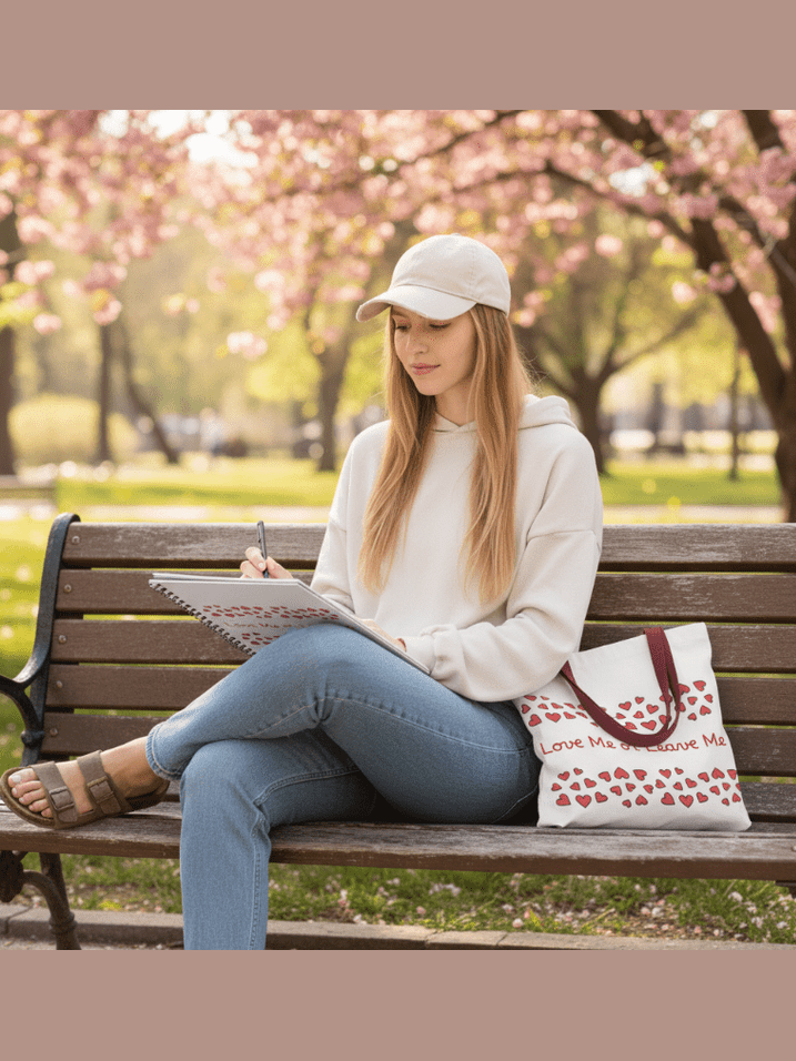 This compact 6" x 8" spiral notebook features a playful design with hand-drawn red hearts and "Love Me or Leave Me" script on the white front cover. It's a reminder to embrace who you are and accept nothing less than you deserve — perfect for journaling, daily reflections, goal-setting, or capturing your thoughts.